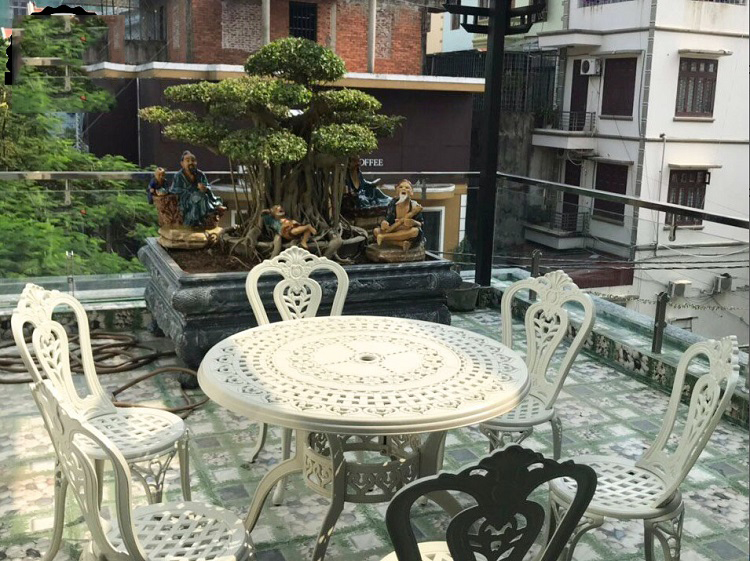 Bộ bàn ghế sân vườn được làm bằng chất liệu nhôm đúc và được phủ thêm một lớp sơn tĩnh điện cao cấp chống han gỉ nên có thể chịu được thời tiết khác nghiệt của việt nam.