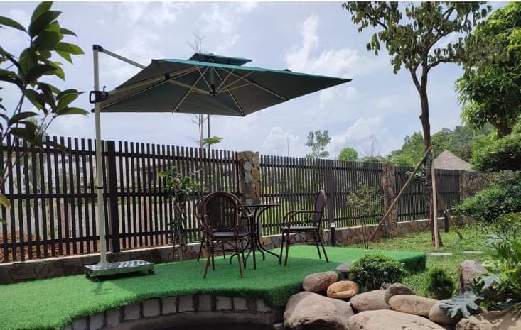 Dù hòa phát lệch tâm hệ nâng hạ màu xanhh dùng để trang che nắng, che mưa, dùng cho các gia đình có sân vườn rộng hay ngồi chơi ở sân vườn, các quán cafe ngoài trời, bạn có thể xoay và điều chỉnh mọi hướng giúp bạn dễ dàng điều chính theo hướng nắng một cách thoải mãi và mang đến khả năng che nắng hoàn hỏa nhất, bạn có thể điều chỉnh ô nghiêng theo ý muốn mà không cân mất thời gian để dịch chuyển cả chân đế của ô.