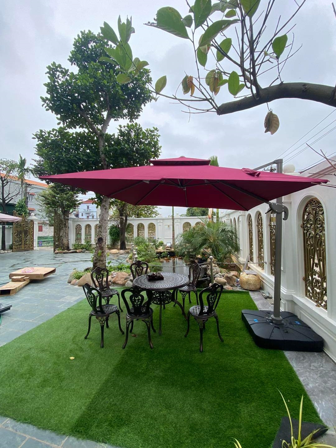 Dù hòa phát lệch tâm vuông 3m hợp kim nhôm xoay 360 màu đỏ dùng để trang trí sân vườn bạn có thể xoay và điều chỉnh mọi hướng, nấc xoay 360 độ giúp bạn dễ dàng điều chính theo hướng nắng một cách thoải mãi và mang đến khả năng che nắng hoàn hỏa nhất, bạn có thể điều chỉnh ô nghiêng theo ý muốn mà không cân mất thời gian để dịch chuyển cả chân đế của ô.