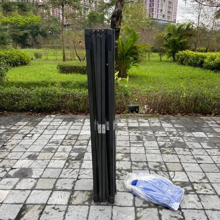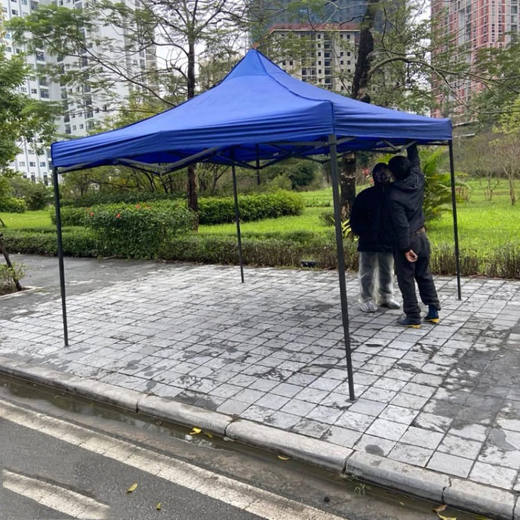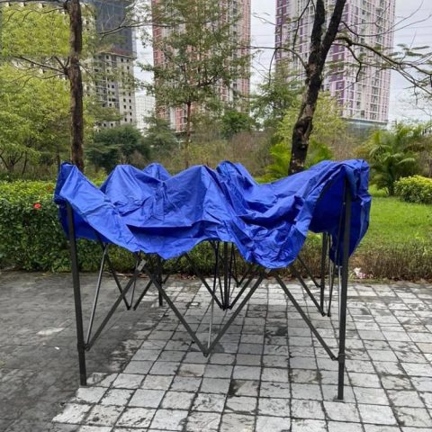 – Chất liệu: khung bằng thép sơn tĩnh điện, mái che vải bạt polyester 420D tráng PVC chống thấm