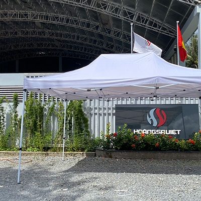 – Chất liệu: khung bằng thép sơn tĩnh điện, mái che vải bạt polyester 420D tráng PVC chống thấm