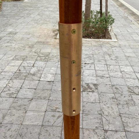 – Thân ô dù làm bằng gỗ, ô dù chính tâm gỗ có dây ròng rọc trên thân điều chỉnh độ mở của ô.