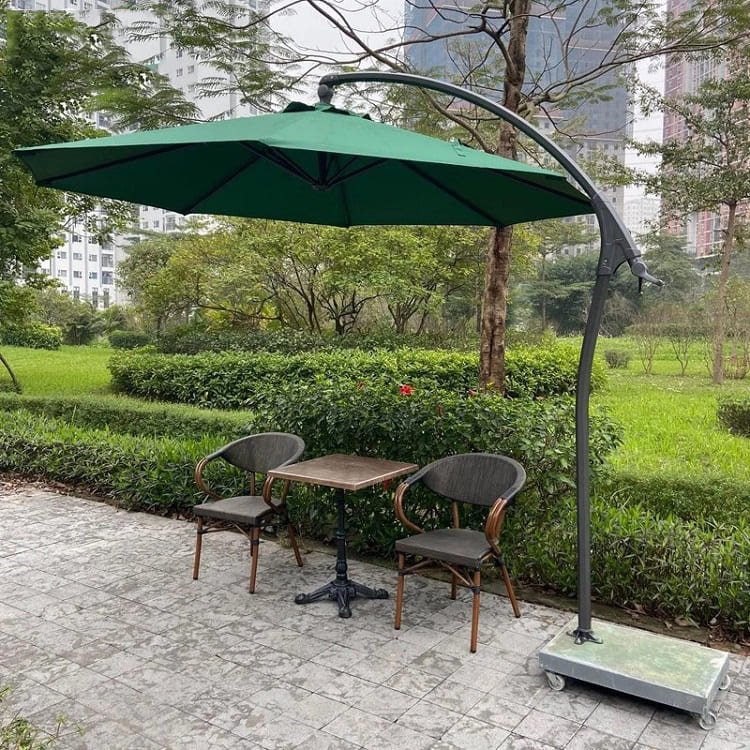 Ô dù hòa phát lệch tâm cong 3m trang trí sân vườn có thể dễ dàng điều chỉnh theo hướng nắng một cách dễ dàng, ô xoay mang đến khả năng che nắng hoàn hảo. Bạn có thể dễ dàng điều khiển ô nghiêng theo ý muốn mà không cần mất thời gian dịch chuyển chân đế ô dù.
