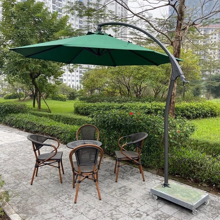 Ô dù hòa phát lệch tâm cong 3m trang trí sân vườn có thể dễ dàng điều chỉnh theo hướng nắng một cách dễ dàng, ô xoay mang đến khả năng che nắng hoàn hảo. Bạn có thể dễ dàng điều khiển ô nghiêng theo ý muốn mà không cần mất thời gian dịch chuyển chân đế ô dù.