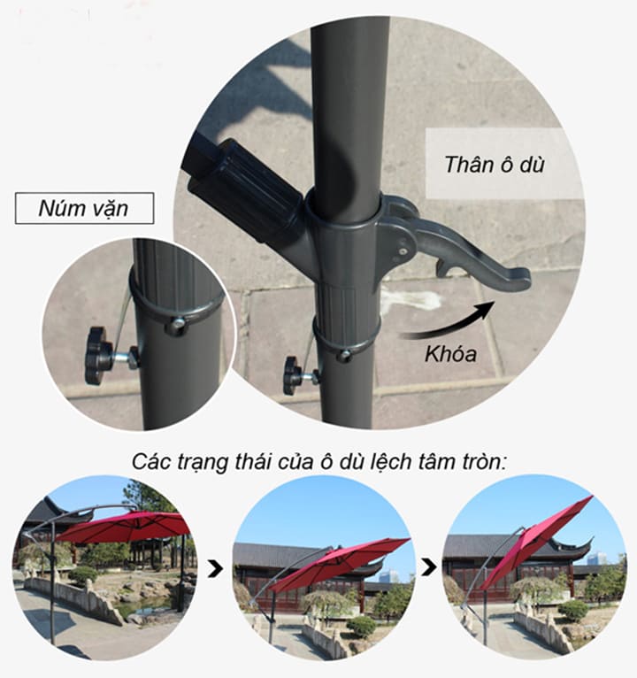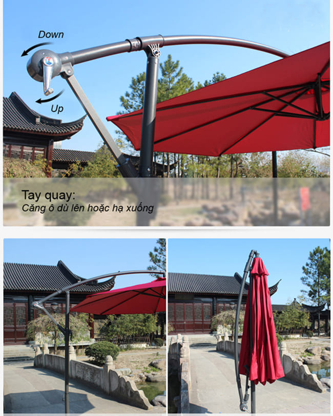 Ô dù lệch tâm tròn có tay quay để điều chỉnh độ mở rộng của ô