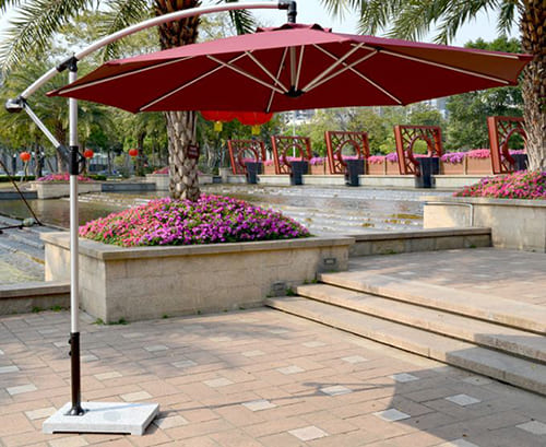 Trên thị trường hiện nay các khu resort nghỉ dưỡng, các quán café, nhà hàng đều sử dụng các loại ô lệch tâm cách điệu nó giúp làm nổi bật không gian riêng của quán.